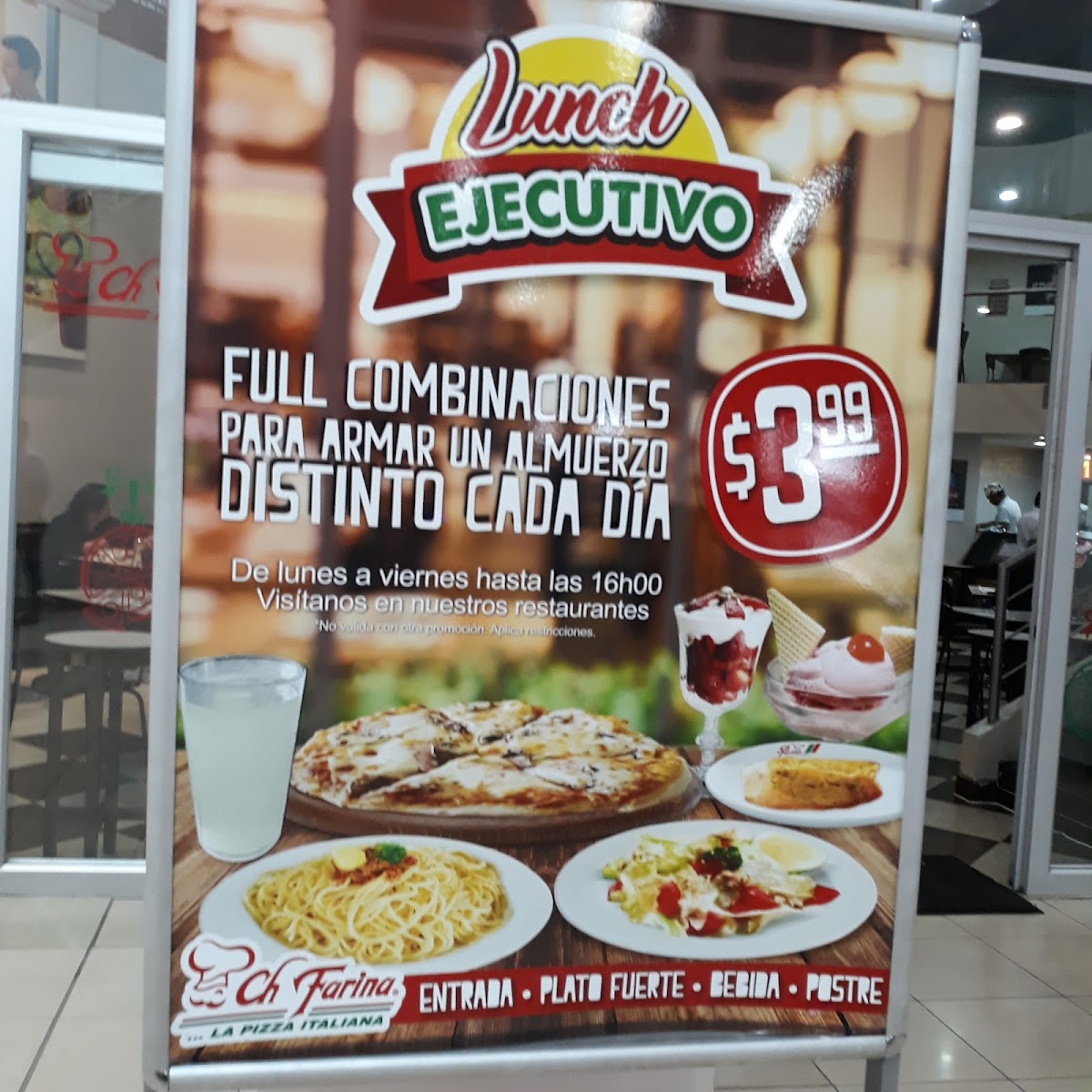 From a reviewer’s perspective, the menu at Ch Farina in Quito delivers a well-rounded and crowd-pleasing Italian-inspired experience that balances variety, value, and familiarity. The pizza selection alone shows impressive range, from Pizza De Italia and Pizza 4 Estaciones in the smaller sizes to family favorites like Pizza Pepperoni, Pizza Napolitana, Pizza Clasica, and the house signature Pizza Especial El CH. For those looking to share-or indulge-the larger formats such as Pizza Hawaiana (Piña-Papaya-Durazno) and Pizza Tex Mex (Carne Molida + Pimiento + Tocino + Jalapeño Picado) stand out as bold, flavorful options.